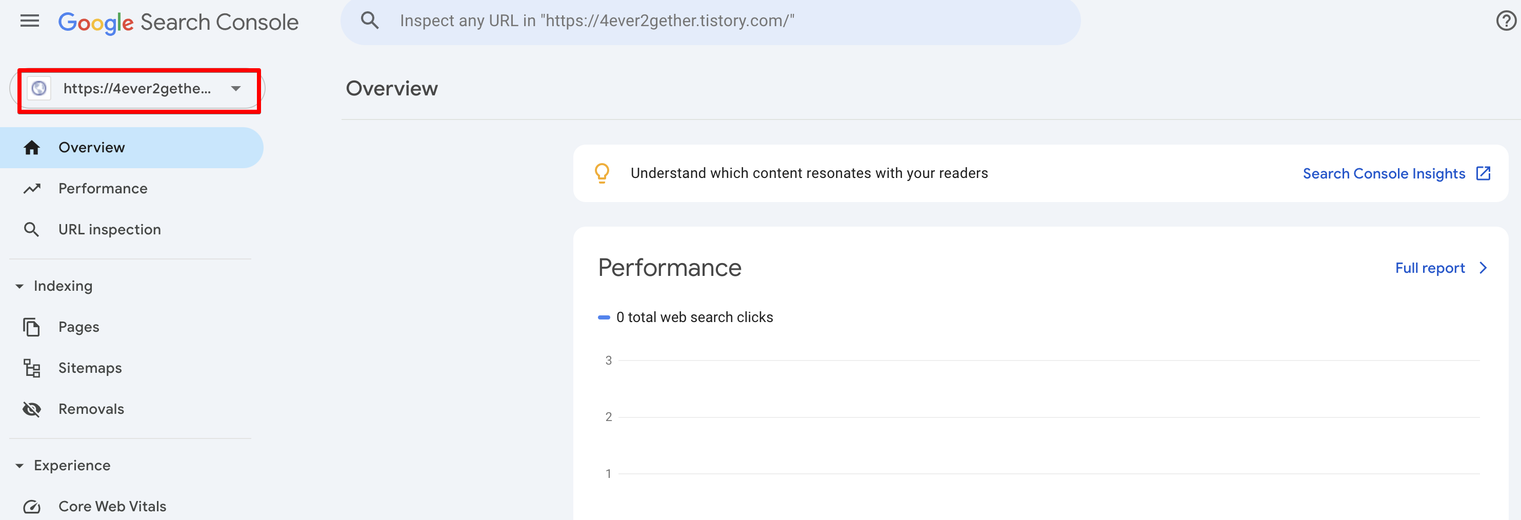 완료되면 서치콘솔에 내 블로그 사이트가 등록된 것을 볼 수 있습니다.
